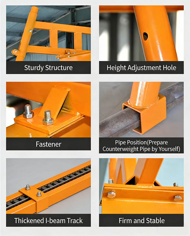 Robusto y estable: Las piezas clave están reforzadas con un diseño de soldadura y refuerzo, lo que hace que toda la máquina sea estructuralmente robusta y garantiza operaciones de elevación seguras y confiables.